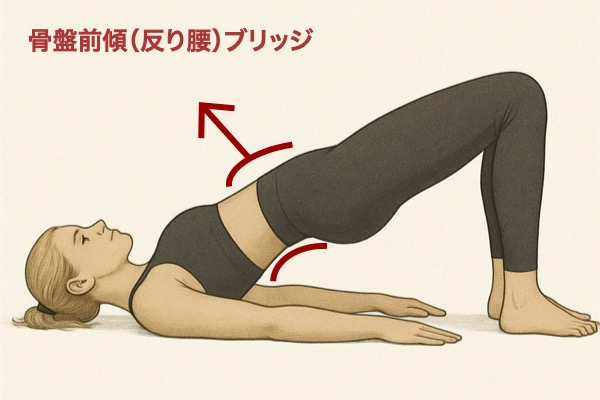 ↑反り腰の人は骨盤前傾ブリッジに注意