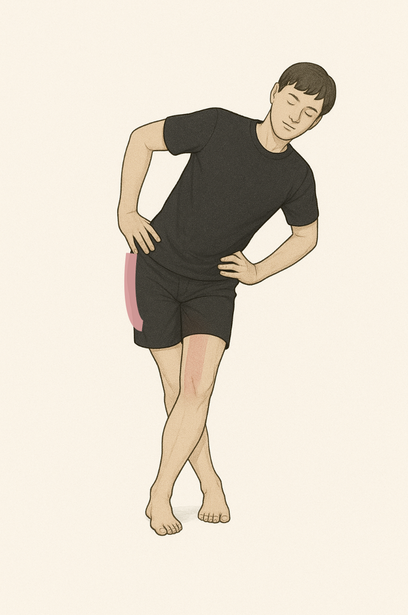 ・大腿筋膜張筋ストレッチ(左右1分前後 × 2セット)